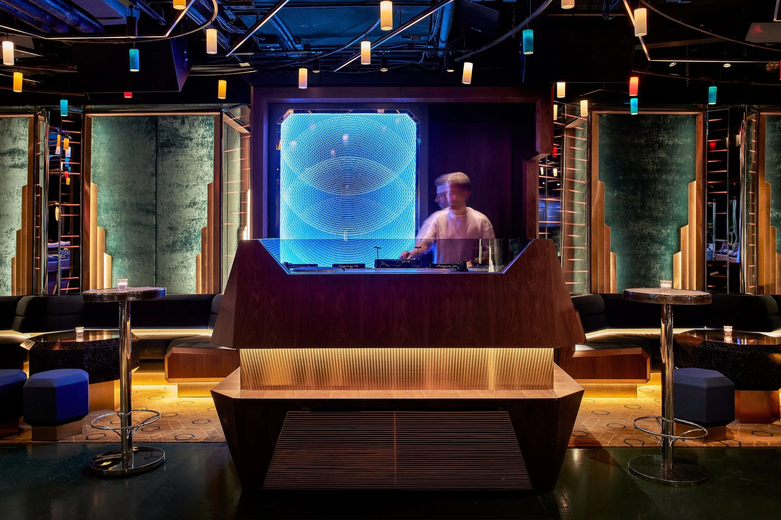 A team was put together with Paris-based luxury furniture designer Hervet Manufacturier, which was led by cousins Cédric and Nicolas Hervet. Cédric was the creative director of Daft Punk, in charge of album covers and stage designs for internationally acclaimed performances. The interior was imagined as a second home for elegant music lovers from near and far. In response to the creative direction of Cassio, which echoed ‘The Great Gatsby’, an idea was born to bridge the 1920s and today. Retro-futuristic materials filled the design with custom-made furniture, lighting, and a spaceship-inspired DJ booth. The redesign propelled Cassio’s international reputation with media coverage from Tatler, Mixmag and Resident Advisor.