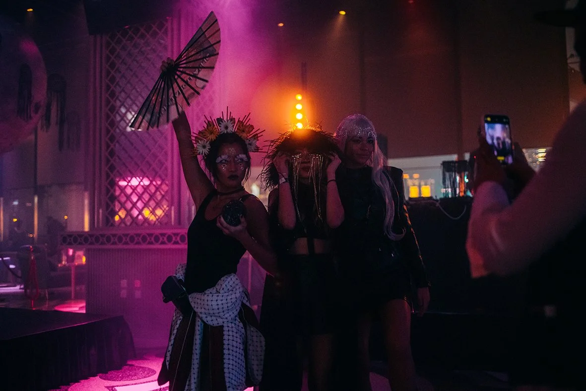 The third edition of Surprise Surprise resulted in a spirited turnout of over 450 guests, impressively dressed as vagabonds and mystical goddesses. Pier 1929, an event space located on the third floor of the Wan Chai Star Ferry Pier, was transformed into four themed areas. The Purple Lounge, a seating area with cocktail service, was atmospheric and hazy. Flying Goddesses performed in space and a Taro Reader was stationed. The Voodoo Bar served Japanese sandos and was filled with 200 fake candles and a disturbing display of 150 children’s dolls. The Whispers’ Lounge & Corridor had a hidden door to a VIP room where special guests experienced an exclusive DJ set. The main space and dancefloor, Moongate, featured two gigantic inflatable moons with over 100 dreamcatchers floating around the stars. Focused around the DJ booth, guests came together in joy. The lineup featured; A-Society Director & DJ from, Nadet; Cassio’s Music Director, Alex Nude; Klaws Wrecks Co-Founder, Mr.Ho; and Surprise Surpise residents. Three main performances created intonations between the musical acts, they featured a leading dancer from the Hong Kong ballet, a cyr wheel performer, a crystal ball performer and a fire performer that intertwined with three contemporary dancers.