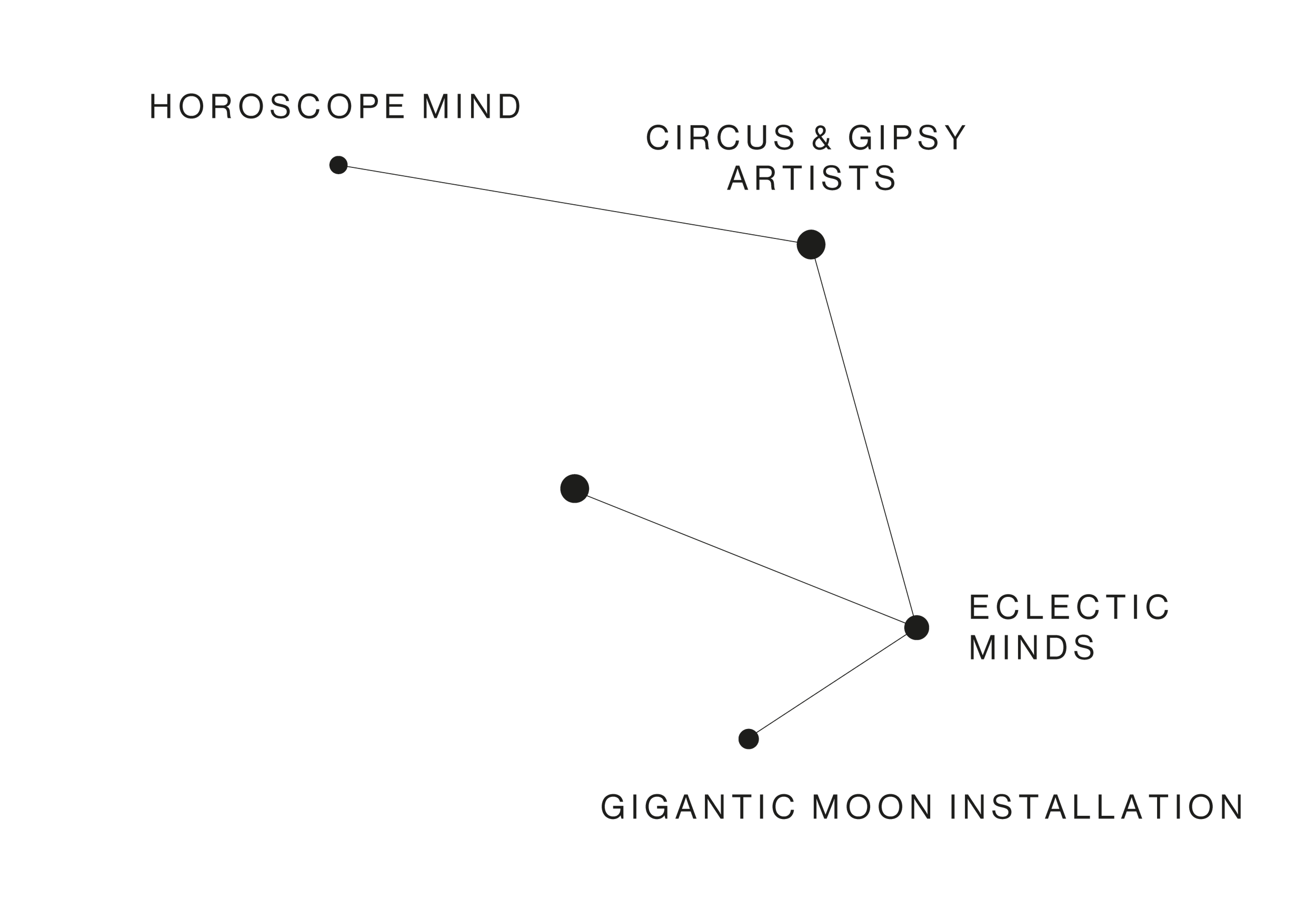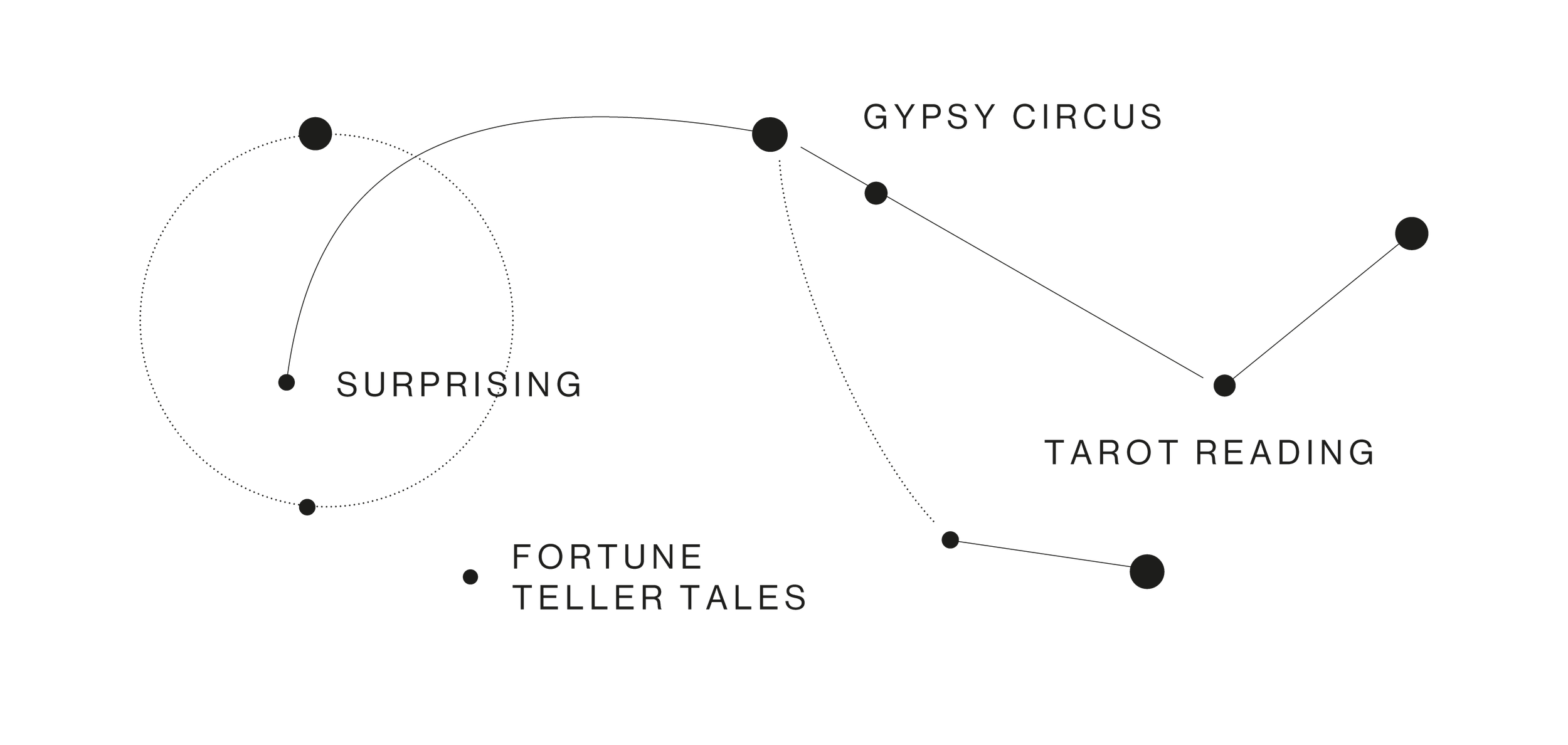 Inspired by the recent rise in astrology and fortune-telling amongst a new generation, Surprise Surprise wanted to celebrate the mystical world of gypsies and wanderers who look to the stars in troubled times.