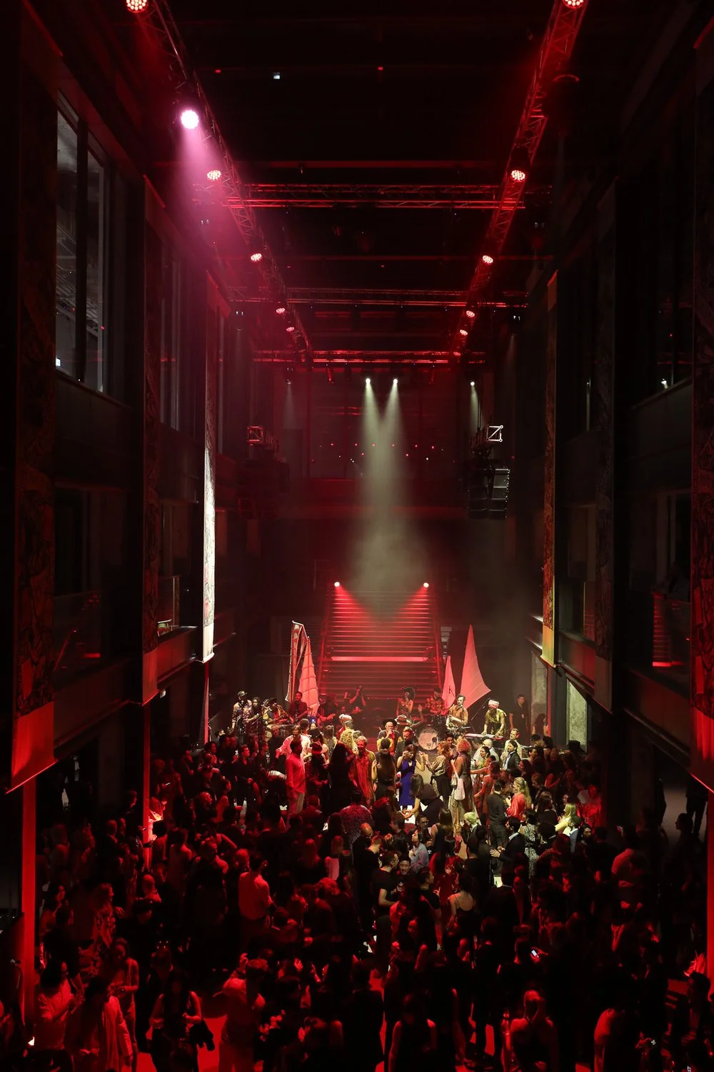 For LACMA’s Art Basel Party 2019, The Mills was transformed into an imaginary vessel for 1200 A-list guests. Following previous editions hosted by Dino Sadhwani and Princess Alia Al-Senuss for the Los Angeles Museum of County Art, it was the most anticipated event of Art Week. The 2019 edition was sponsored by MGM resorts, enhancing the spectacle. Inspired by “Around the World in 80 Days” by Jules Vernes, a narrative was created for guests to visit different cultures at different times. The immersive theatrical experience consisted of eight crew members who led guests through wonderous journeys.