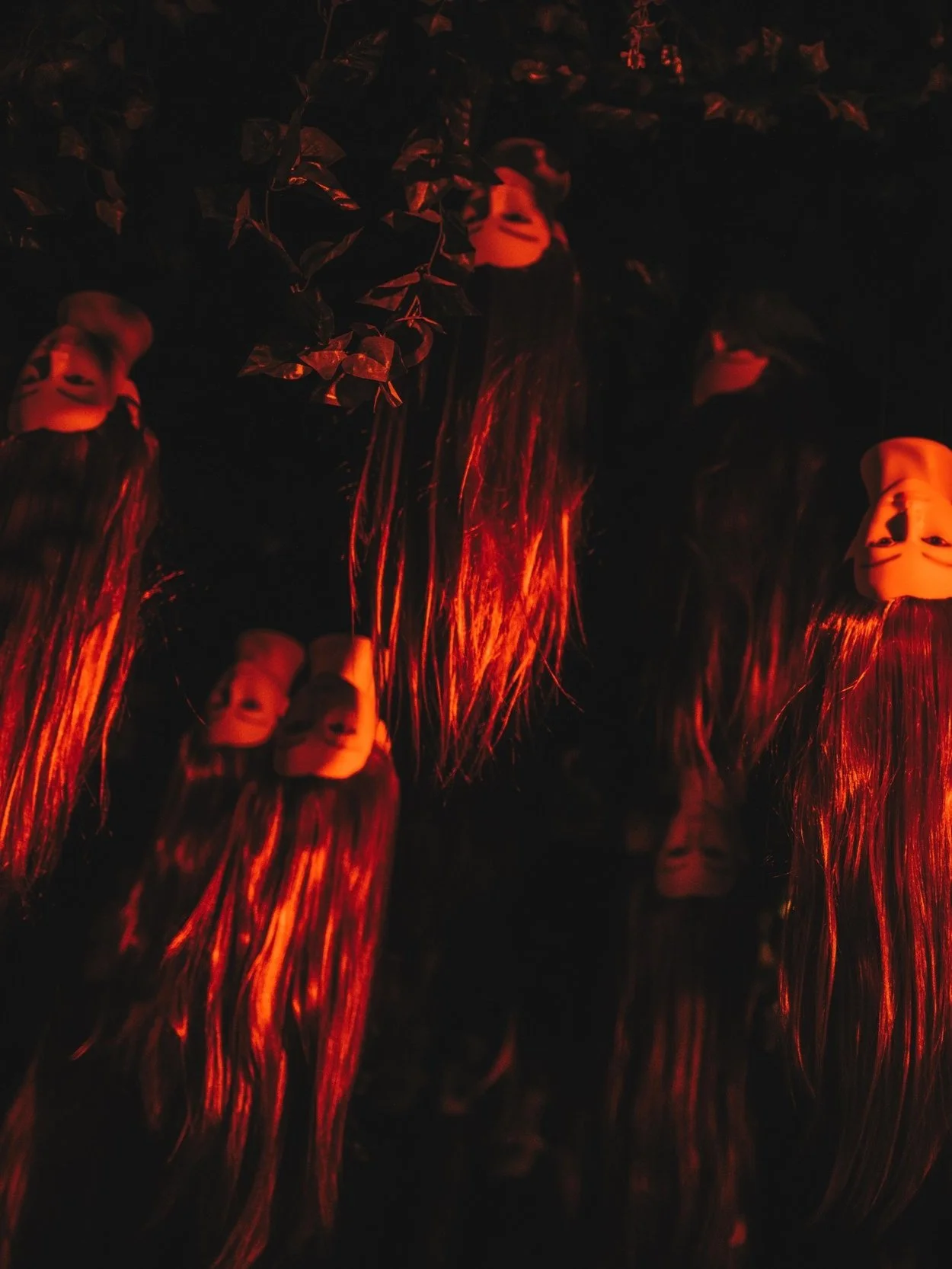 The 2020 Halloween party at Dragon-I created shock and awe with an installation of 700 doll heads. The doll's heads were hung upside-down from the ceiling, creating a dandling sea of hair. Light design created shadows that blended with the dolls’ luscious locks that osculated above the crowd. The singular installation transcended the whole club, with the same doll's head used on the flyer, table reservation, rooftop, and DJ booth.